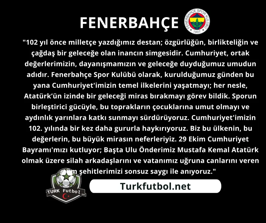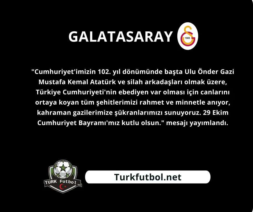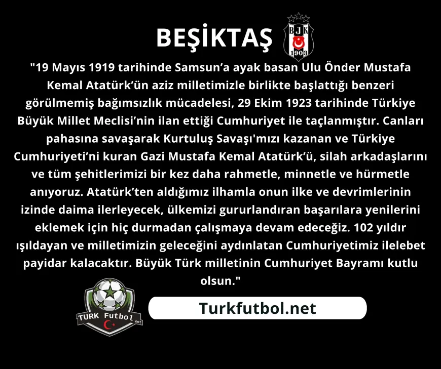 Beşiktaş, Fenerbahçe ve Galatasaray kulüpleri, 29 Ekim Cumhuriyet Bayramı dolayısıyla kutlama mesajı yayımladı.
